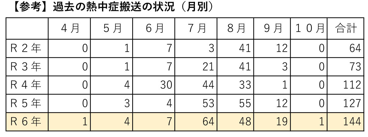 熱中症に関しては全国的に暑さに慣れていない7月の方が8月より救急搬送が多い傾向があり(※2)、それは会場のあるひたちなか市でも同様です。