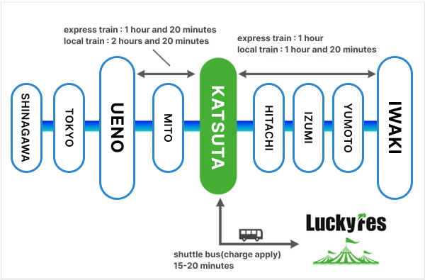 JR Katsuta Station East Exit → Venue (Tsubasa Gate)7:00 AM – Running as needed (Last departure at 7:00 PM) Adults