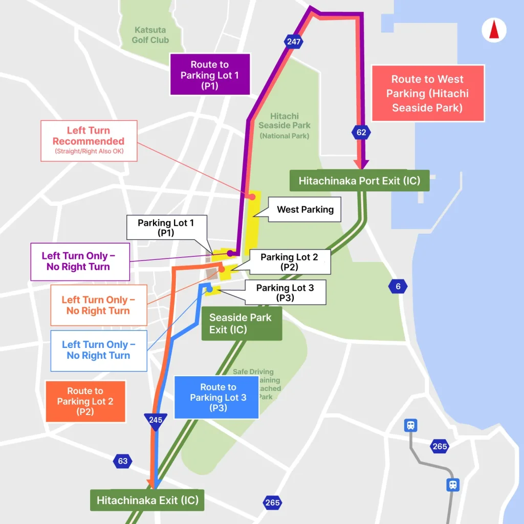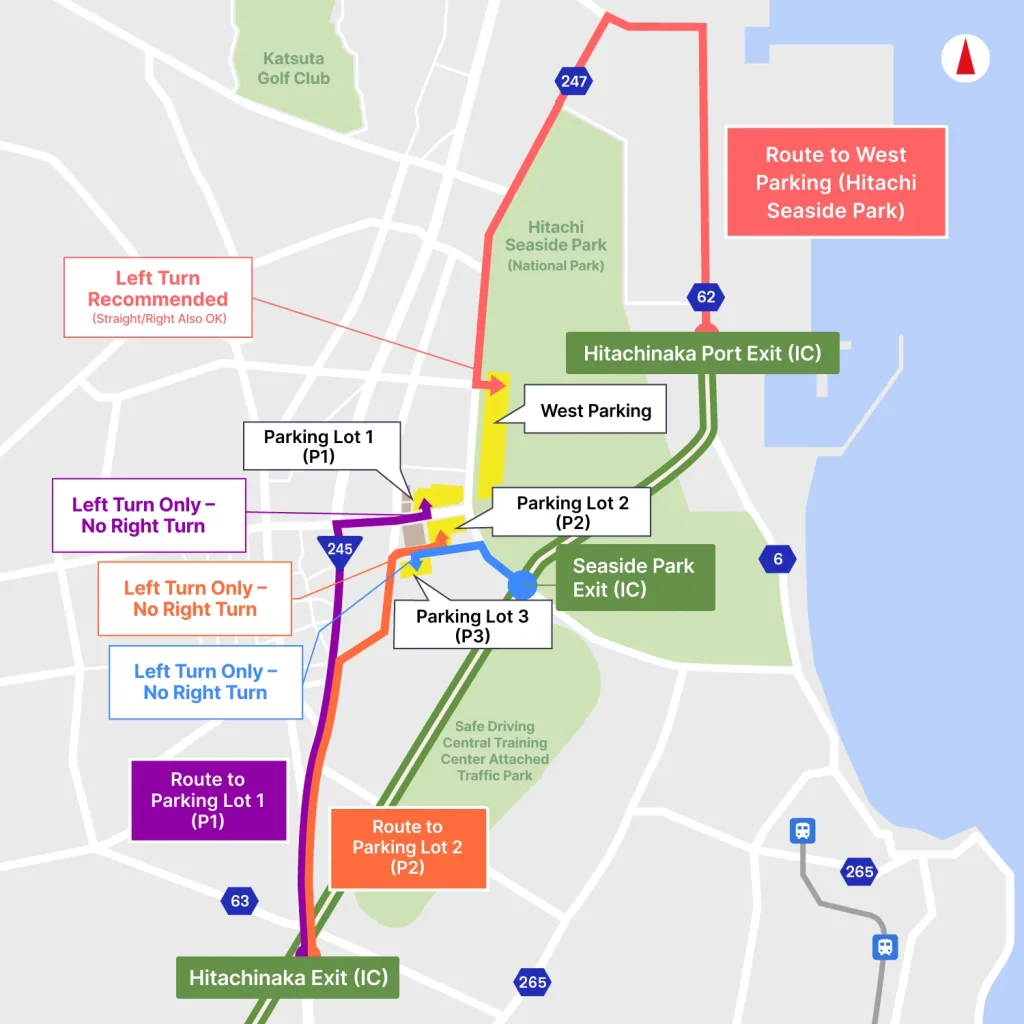 • After the event, traffic restrictions may be implemented at Hitachi Seaside Park I.C.