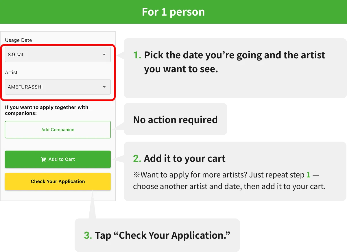 - However, if the same person is registered multiple times for the same artist, their application may become invalid. Please be careful.