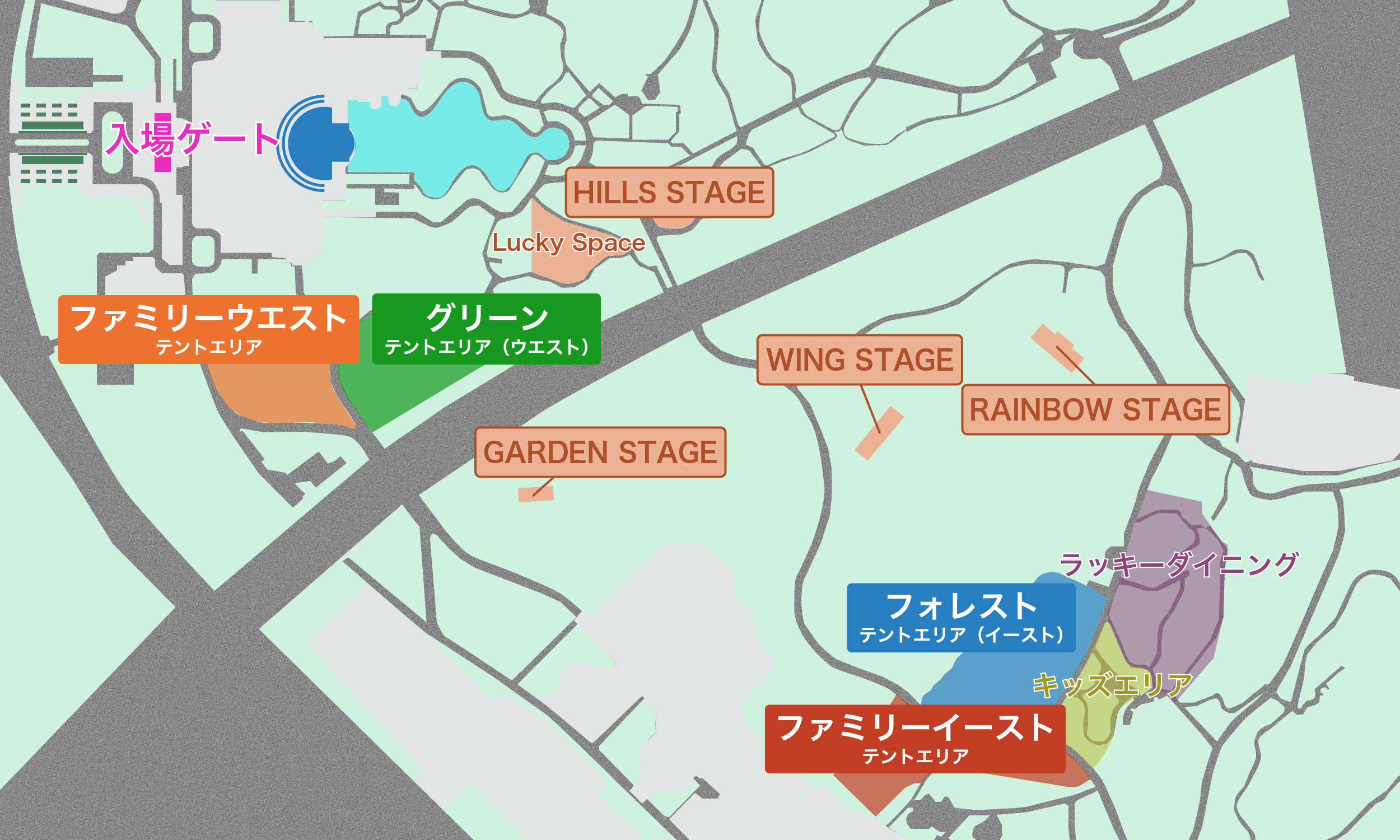 - ファミリー(イースト/ウエスト)テント券には購入対象制限が設けられています。テントエリア入場時のチェックの際に、 万が一対象外の方がご購入されていた場合はテントエリアをご利用いただくことができませんので、ご注意ください。